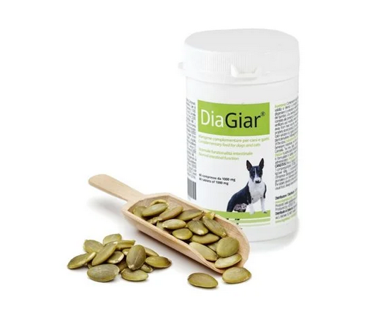 DiaGiar tabletės palaiko normalų virškinimą ir sveiką žarnyno mikroflorą. Jos padeda kovoti su Giardia canis sukeltomis infekcijomis. Tai natūralus preparatas šunims ir katėms, kurie gali patirti viduriavimą, skrandžio sutrikimus ar žarnyno infekcijas. Produktas jungia augalinius ekstraktus, eterinius aliejus ir bioaktyvius komponentus, siekiant maksimalios antibakterinės, antivirusinės ir priešuždegiminės apsaugos.