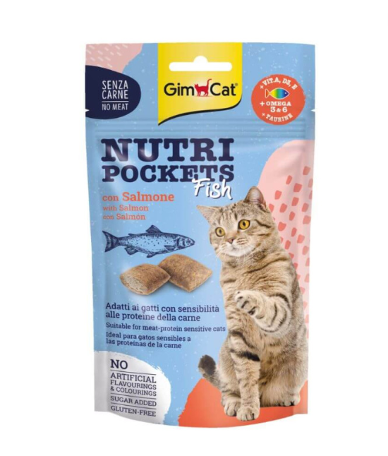 Receptūra sukurta be mėsos, todėl tai puikus pasirinkimas katėms, jautrioms tam tikriems gyvūninės kilmės baltymams. „Nutri Pockets FISH“ suteikia galimybę pasiūlyti augintinei gardų ir sveikesnį alternatyvų užkandį neprarandant skonio. Sudėtyje esanti žuvis ir žuvies produktai (4 % lašišos) suteikia natūralaus aromato bei vertingų maistinių medžiagų.