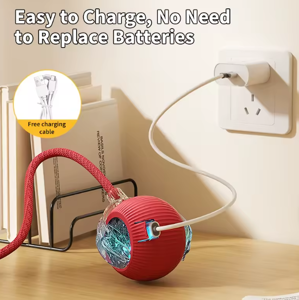 Cat Ball yra įkraunamas per USB / Type-C jungtį, todėl nereikia keisti baterijų. Tai ne tik patogu, bet ir ekonomiška bei draugiška aplinkai. Pilnai įkrautas žaislas užtikrina ilgesnį žaidimo laiką ir yra visada paruoštas naudojimui.