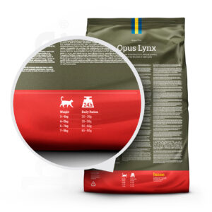Kad virškinimas būtų sklandus ir patogus, „OPUS LYNX“ sudėtyje yra tik viena gyvūninių baltymų rūšis – vištiena. Tai sumažina maisto netoleravimo riziką ir padeda jautrioms katėms.