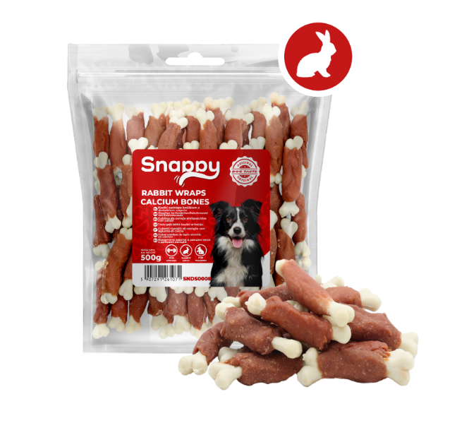 Leiskite savo šuniui mėgautis SNAPPY DOG SNACKS TENDERBITE 500g Rabbit Wraps – baltymingu, dantims palankiu skanėstu. Tikra triušiena apvyniota aplink kramtomą krakmolo pagrindu pagamintą kalcio šerdį, kuri padeda švarinti dantis ir tenkina natūralų kramtymo instinktą.