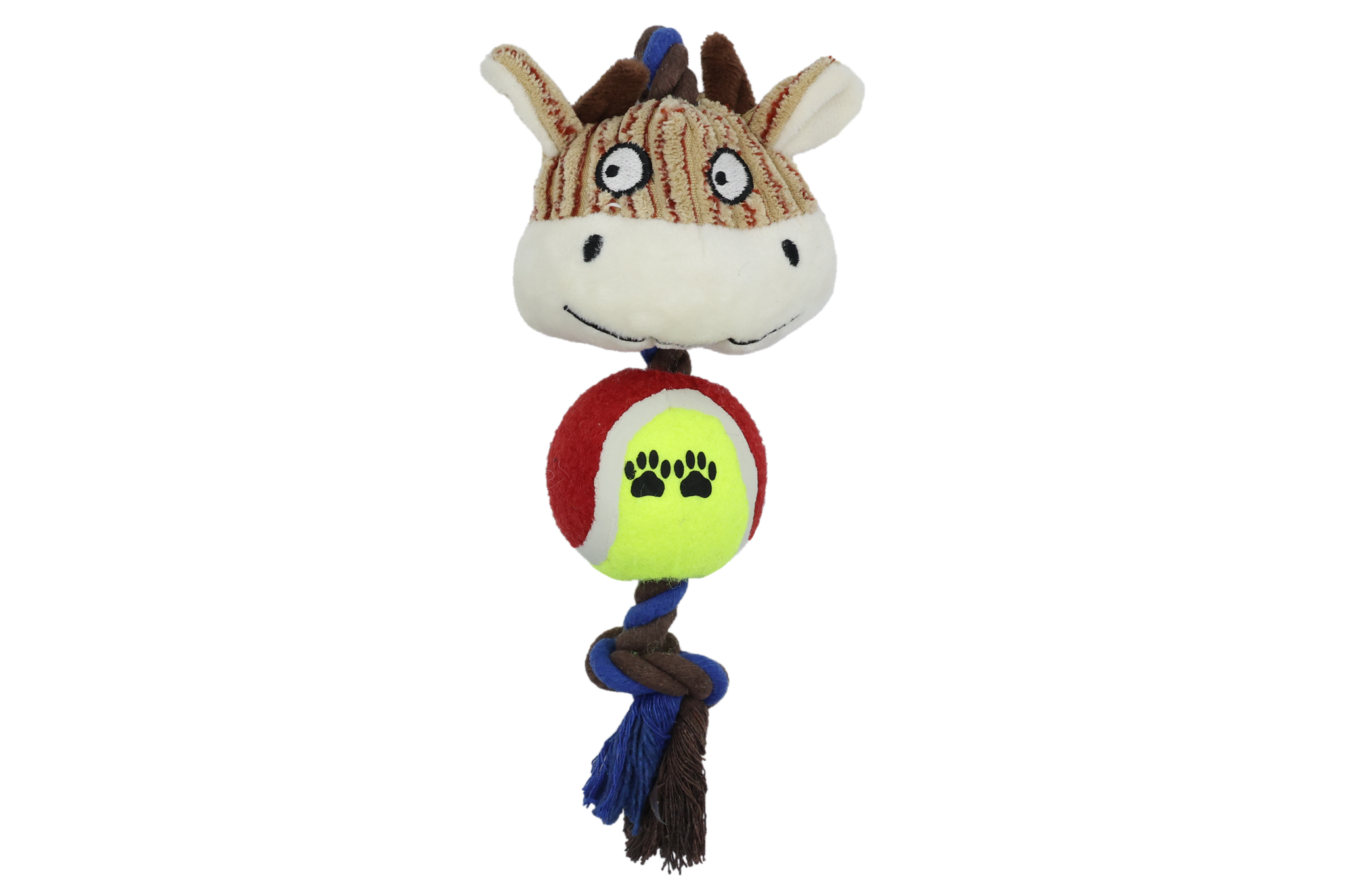 UNIQ PETS Ropy Calf – pliušinis šunų žaislas su cypsėjimu, kamuoliuku ir virve, minkštas, tvirtas ir puikiai tinkamas žaidimui bei kramtymui.