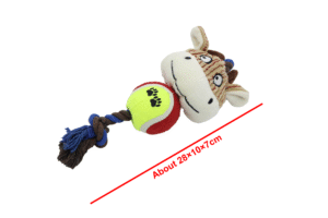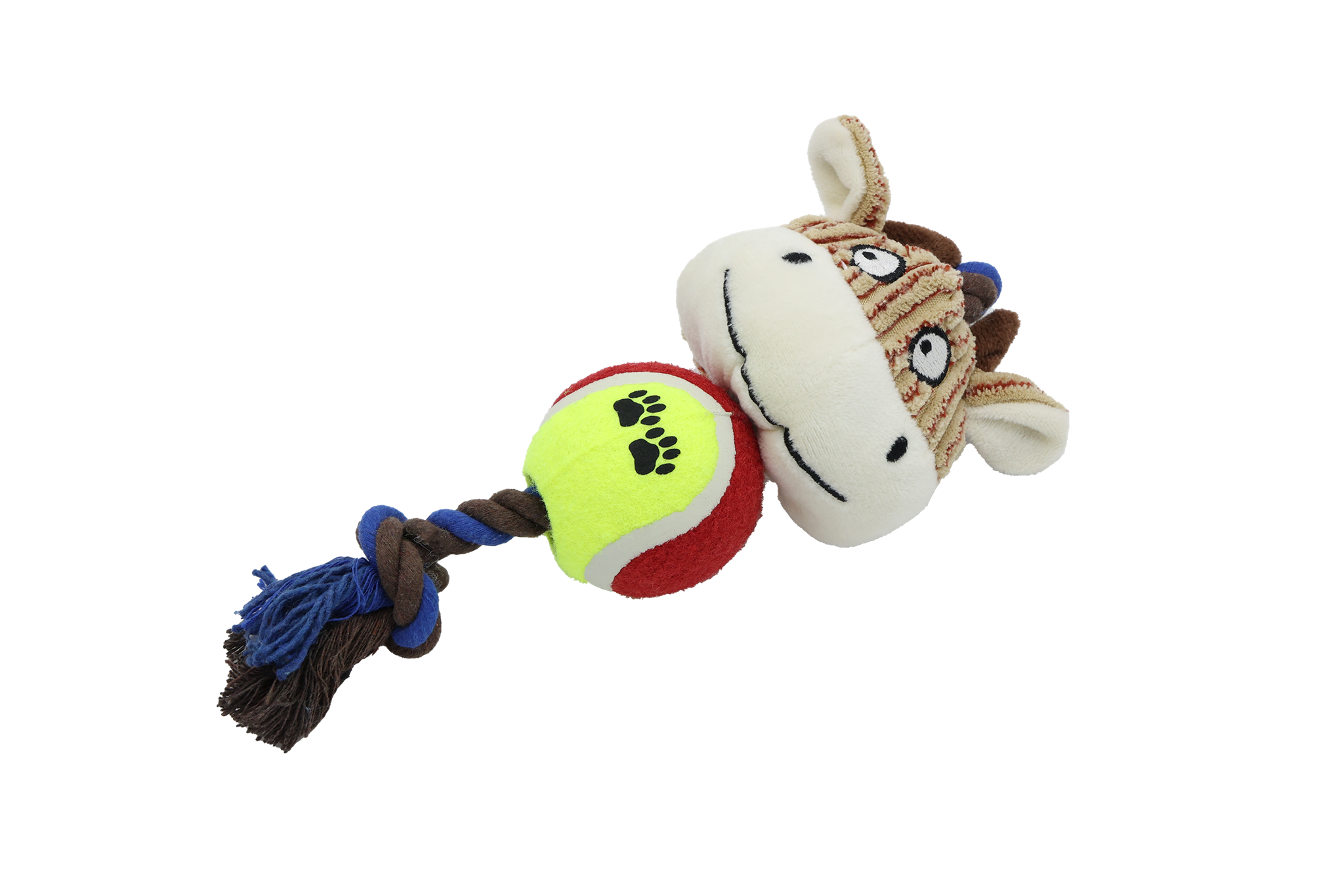 • Žaisminga forma – mielas veršiuko dizainas su kamuoliuku ir virve linksmiems žaidimams.