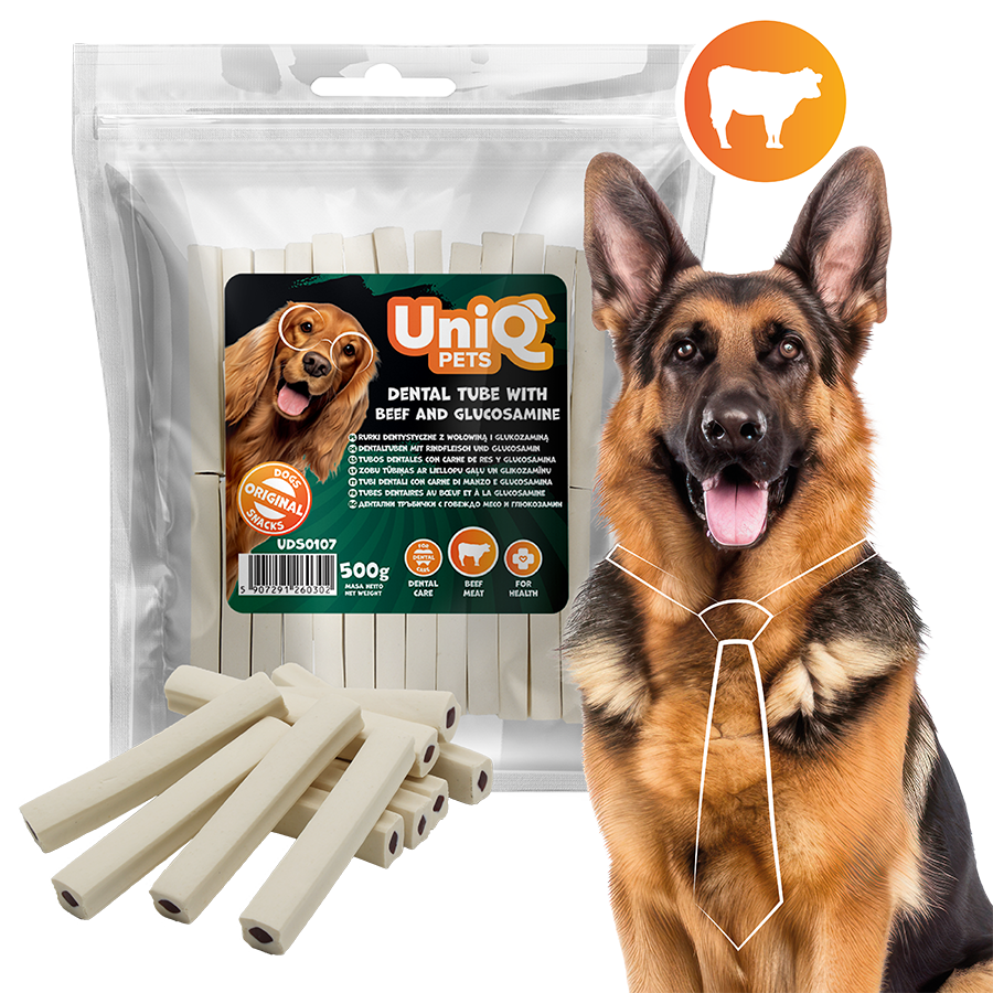 UNIQ PETS Dental Tube su jautiena ir gliukozaminu, 500 g – šunų skanėstai